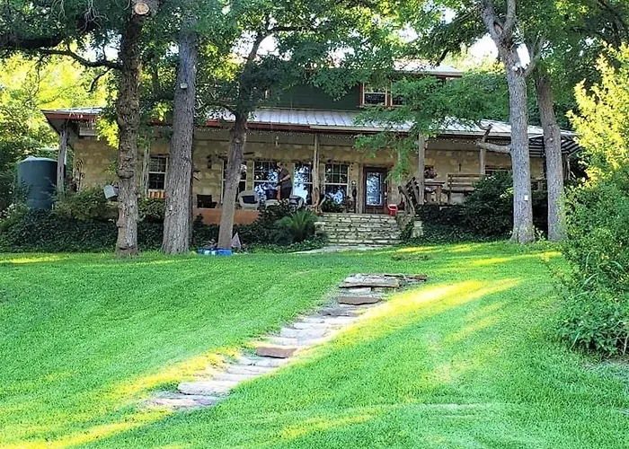 Situada en una zona rural de Marble Falls, la villa Grandview House On Hamilton Creek Villa, de 279 m^2, está aproximadamente a 15 minutos en coche del Hidden Falls Adventure Park. Hay habitaciones con un patio, un vestidor y un sofá, además de una amplia cocina con una nevera, una tostadora y una lavadora.